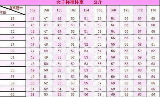 辽宁美女请看最新女性标准体重表164标准体重59公斤 每日头条